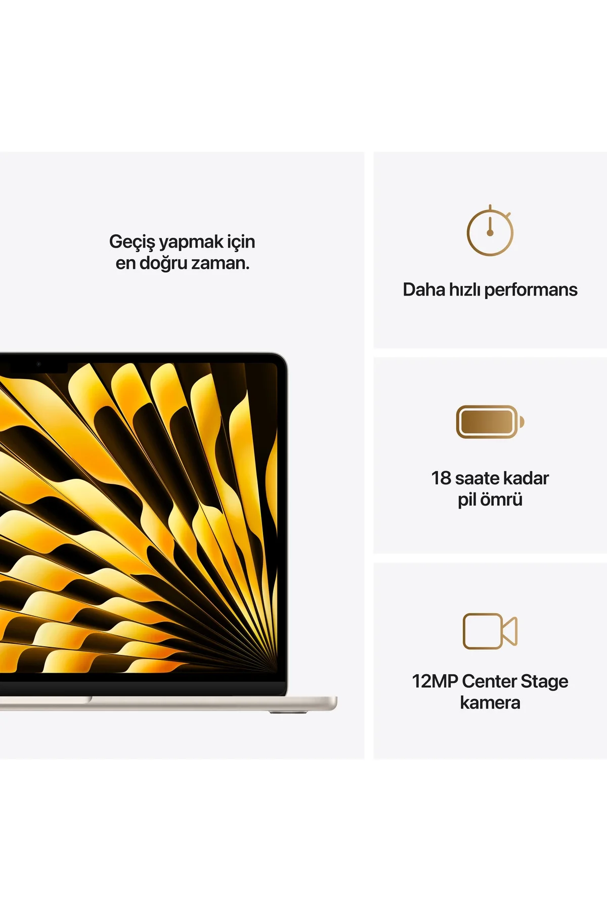 Apple MacBook Air M4 16GB 256GB SSD macOS 13" Taşınabilir Bilgisayar Yıldız Işığı MW0Y3TU/A