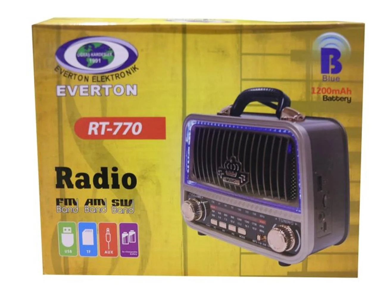 Everton Rt-770 Şarjlı Led Işıklı Nostaljik Radyo(Bluetooth Fm-Usb-Tf-Aux)