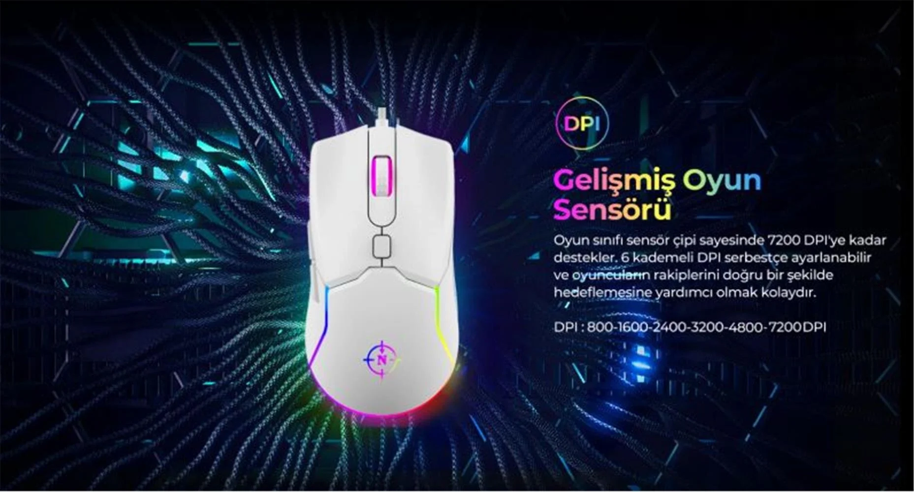 North Air White RGB Kablolu Profesyonel Oyuncu Mouse